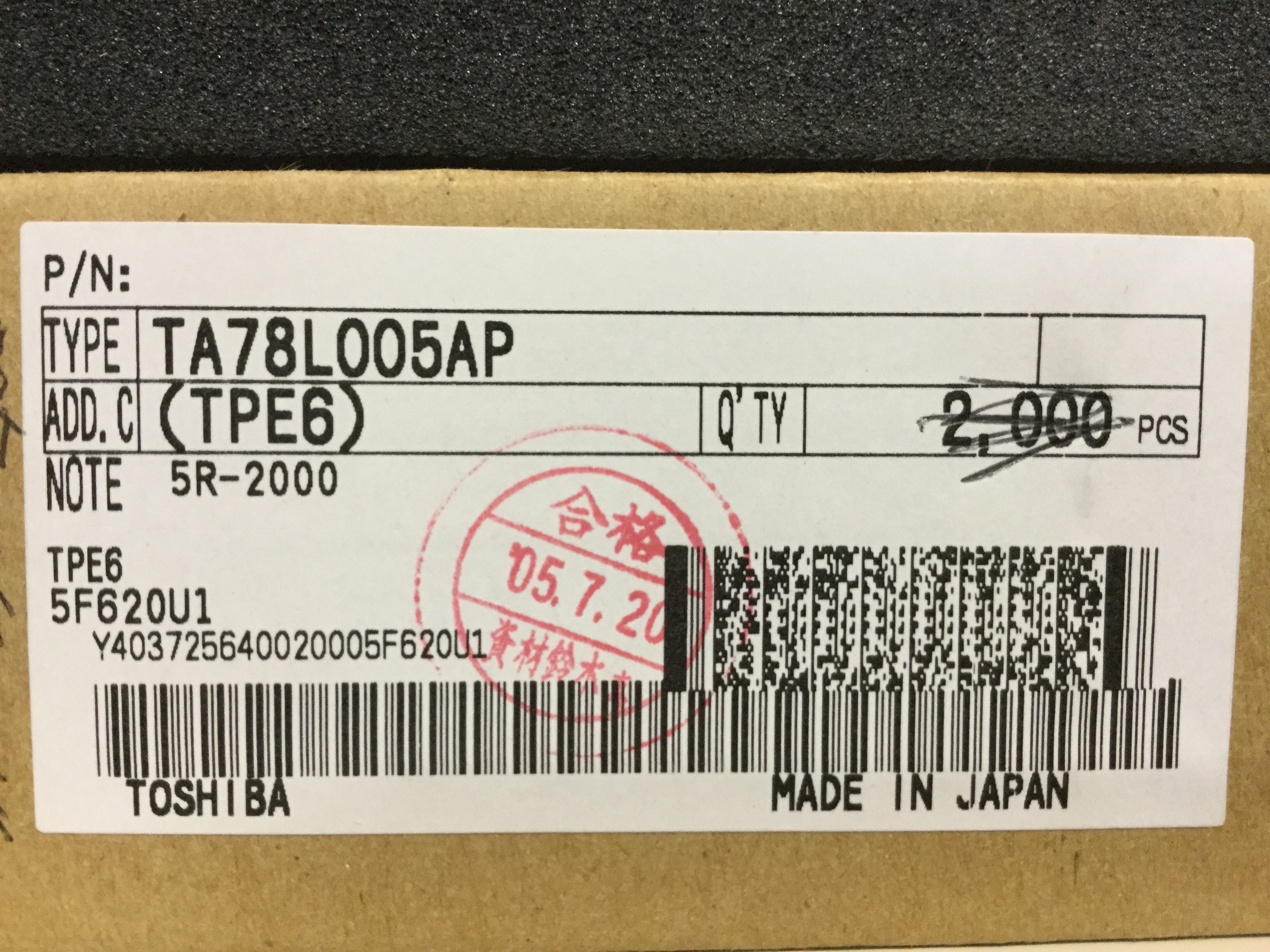 | 型番 | TA78L005AP(TPE6) |